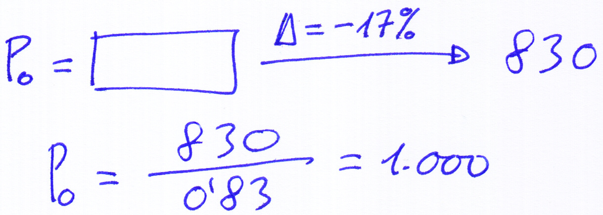 que si expresamos en forma númérica y poniendo porcentajes en lugar de tantos por uno será: